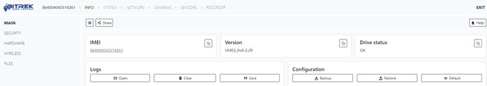 | Drive status | The status of the internal storage, if message ERROR appears, check the Logs of the device |