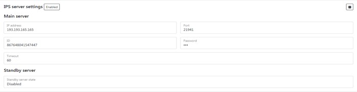 You can also configure the IPS server itself, specifying its address, port, ID, etc., as well as view the current GPS information