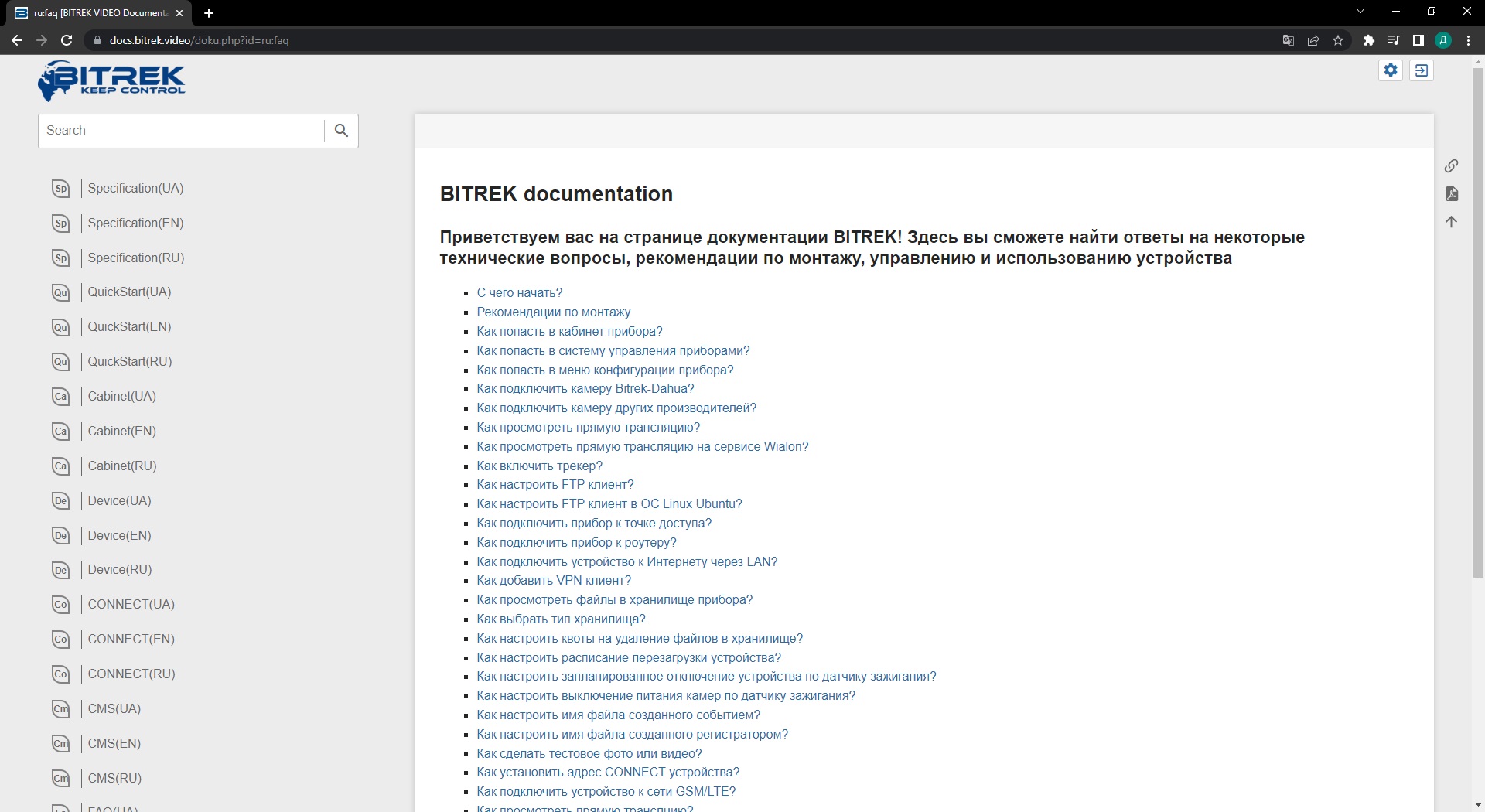 Нажав на эту вкладку, вы попадете на страницу документации для устройства mNVR и сможете найти ответы на интересующие вас вопросы и основные инструкции по использованию устройства