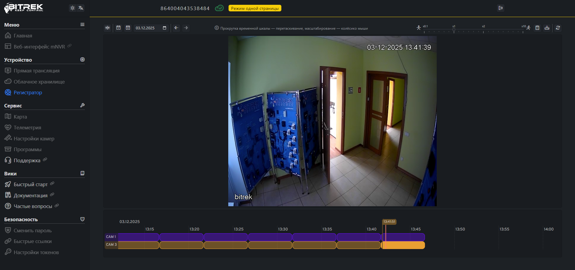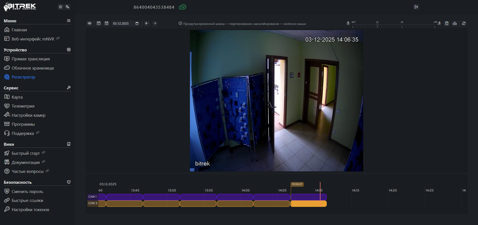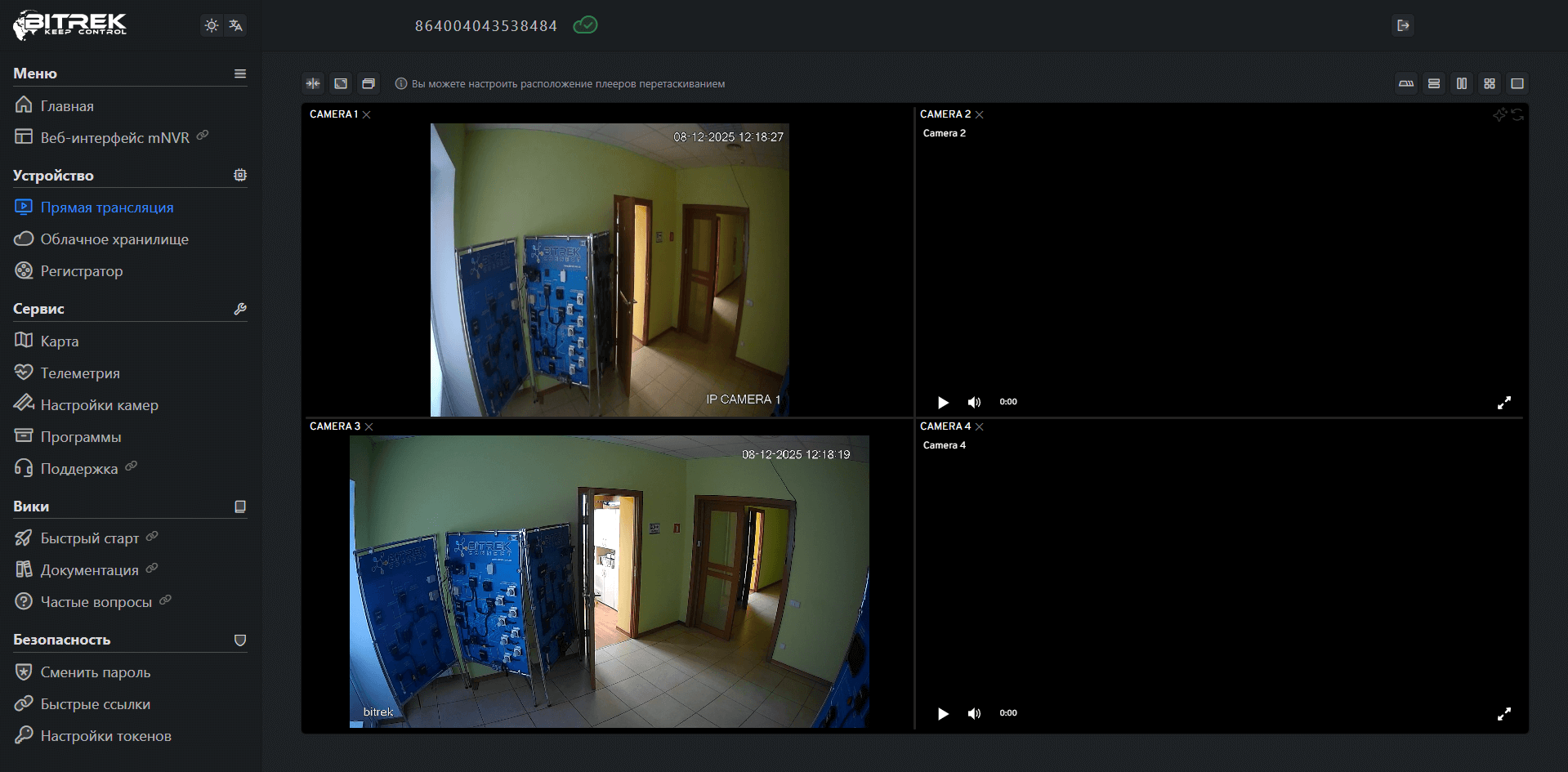 Введя пароль на сайте Bitrek.Video от наклейки на устройстве, вы попадаете в кабинет пользователя.