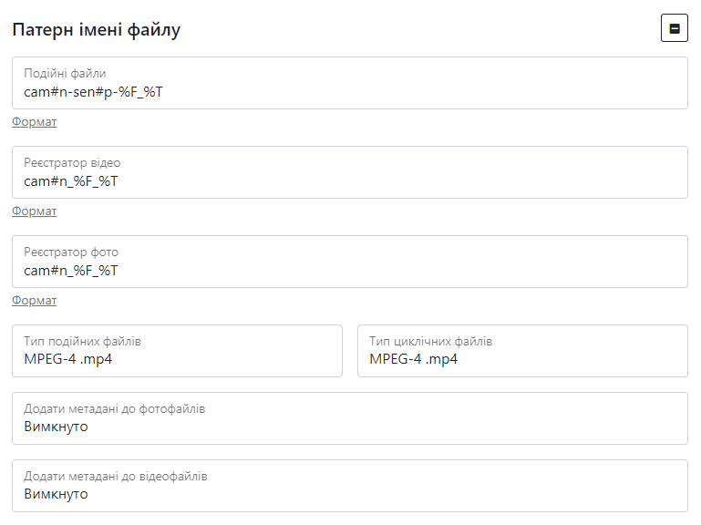Таблиця 4 – Параметри mNVR для налаштування назви створюваного файлу
