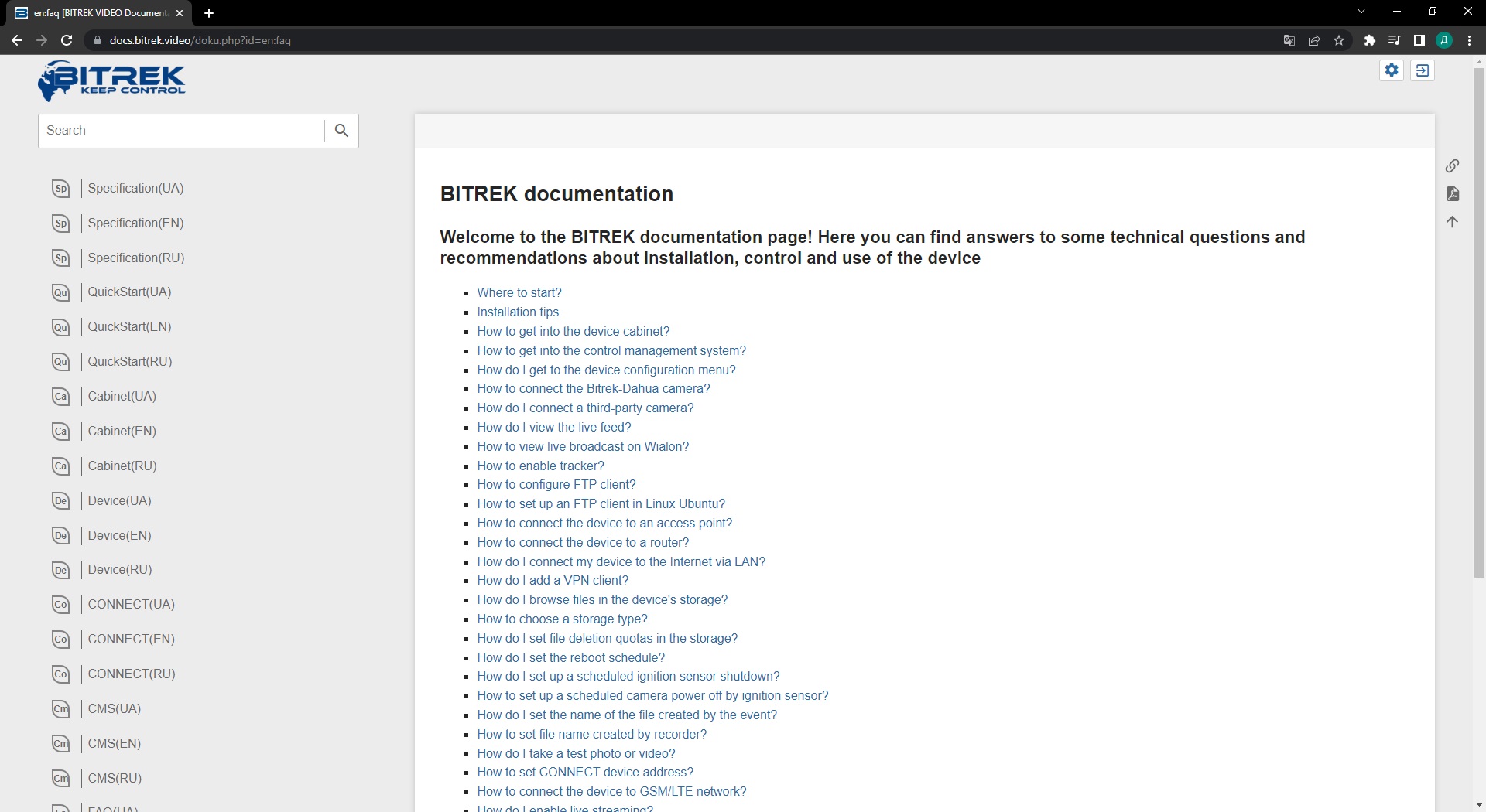 By entering the password on the site Bitrek.Video from the sticker on the device you get to the user account.