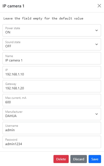 - network type (static address or DHCP, we advise to choose a static address to avoid looking for the device on the network)