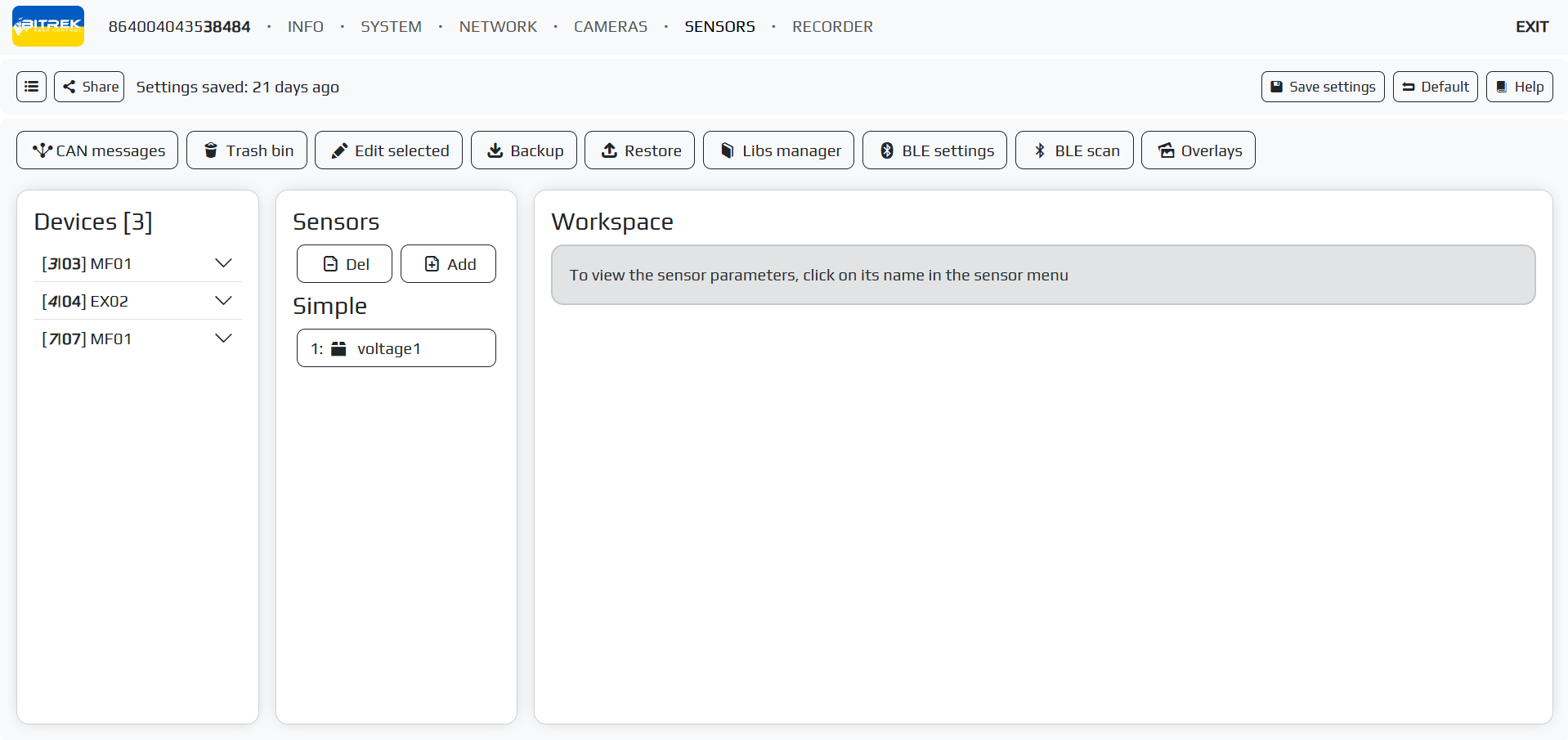 The section allows you to work with sensors, namely to add, edit and work with different types of sensors