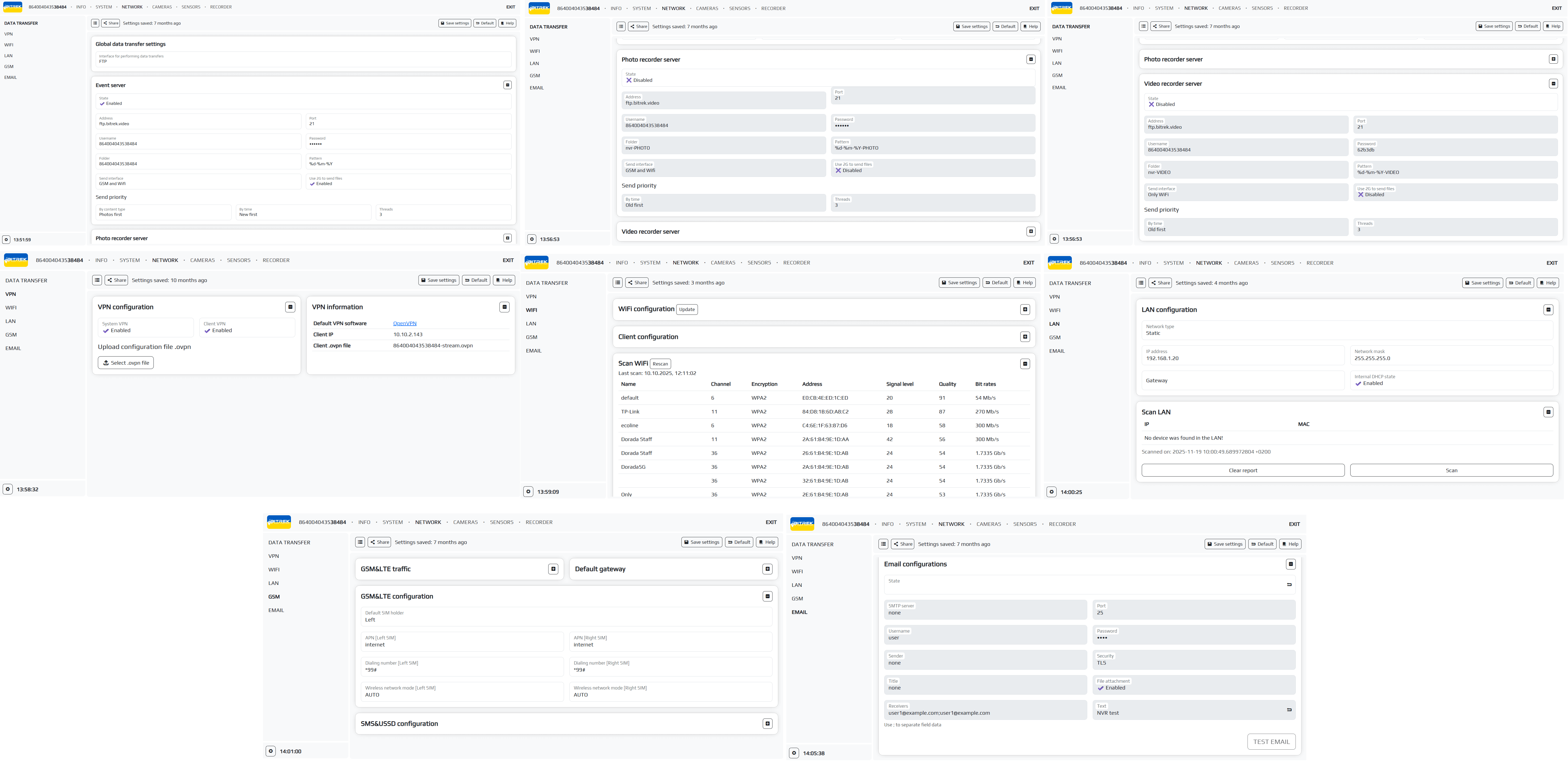 Section SETTINGS checks all functions of your device (WIFI, VPN, VPN, GSM, tracker, cameras, etc.)