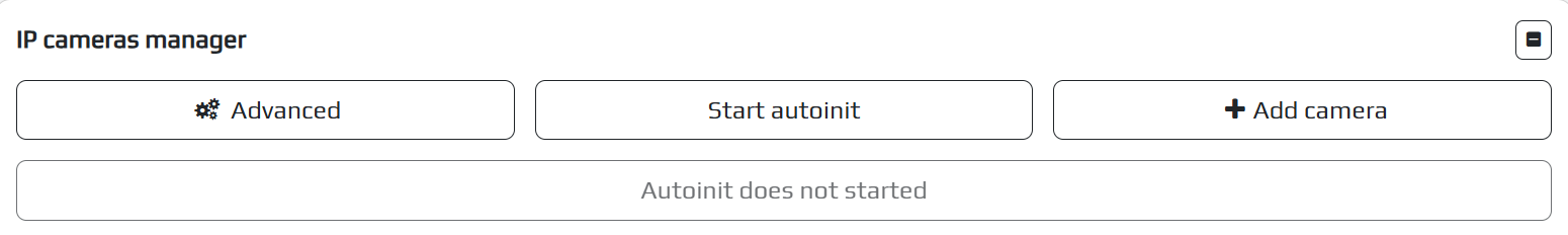 In most cases, autoinit will detect and add the camera for you, however, if this does not happen, you can try to add it manually by clicking the “Add” or “Advanced” button and specifying the desired parameters.