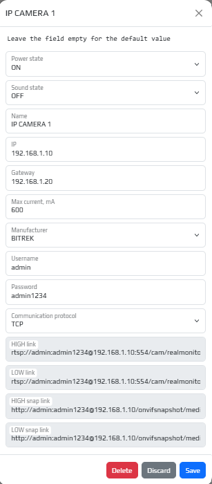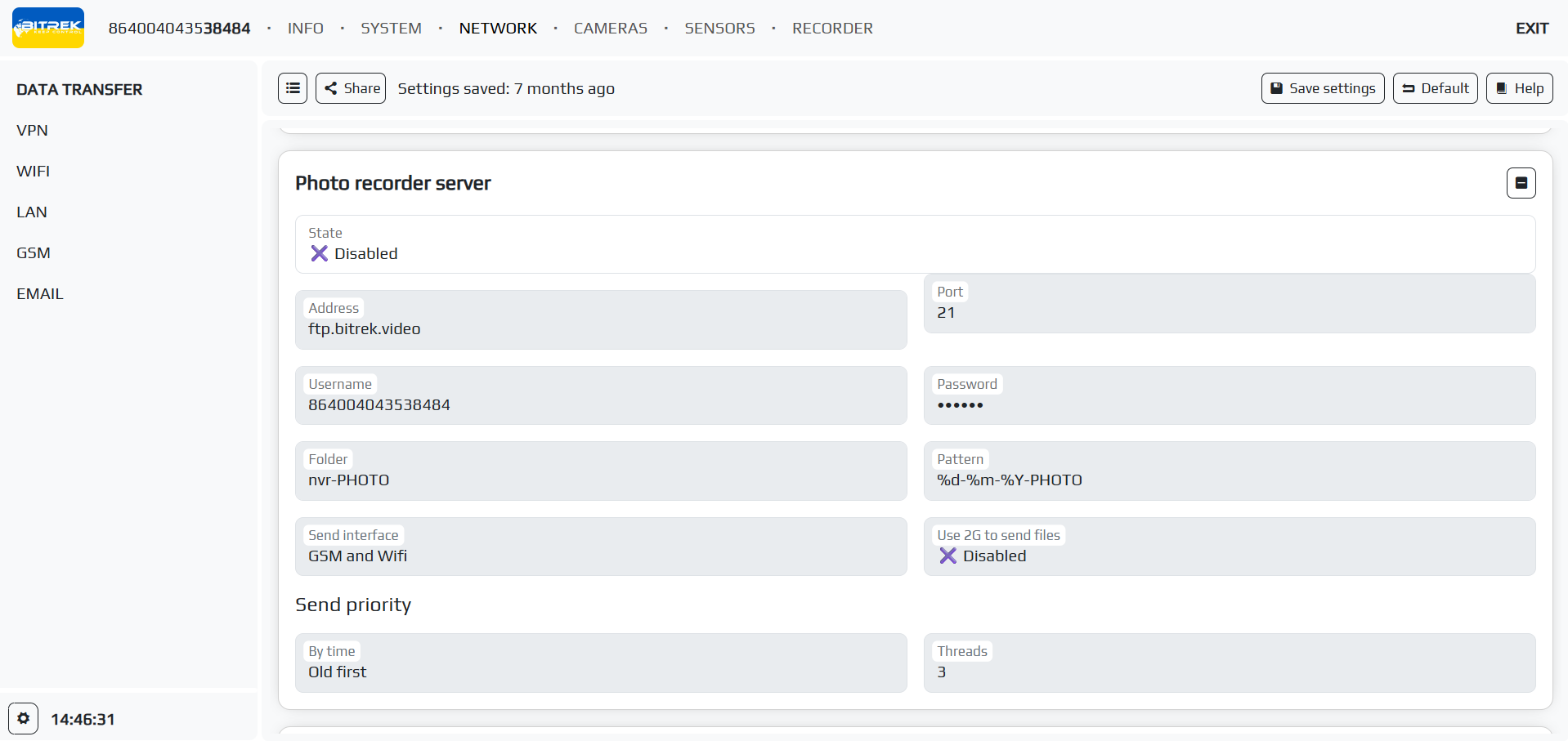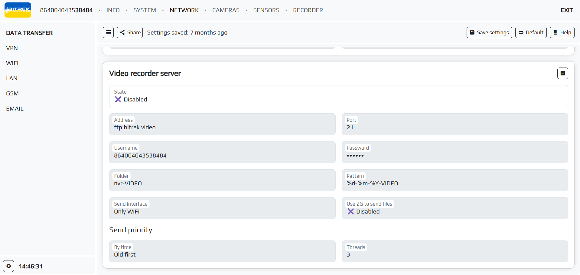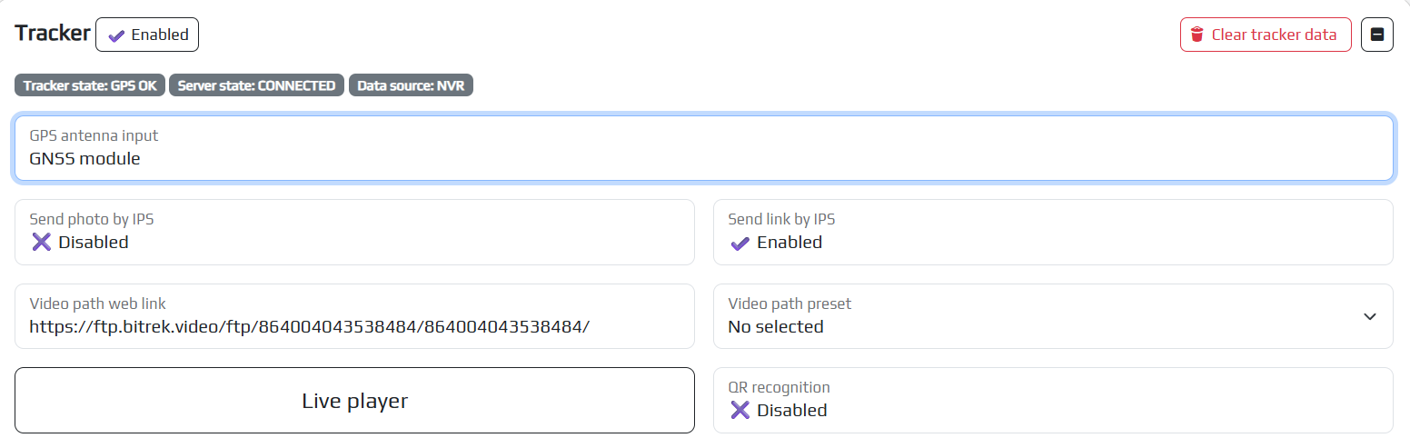 Presetting the link to the video - if you have paid for FTP access, you can select the server to which you can go by specifying the link to the video in the appropriate field (you need to specify the server address, device ID, file package and its name, for example: https://ftp.bitrek.video/ftp/IMEI/IMEI/file_example.jpg