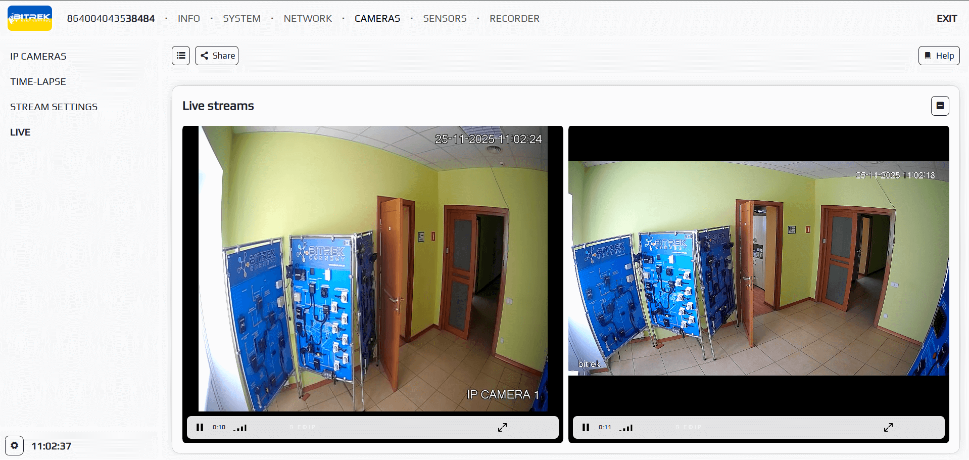 In section NETWORK information about the status of devices that can be connected: cameras, etc.