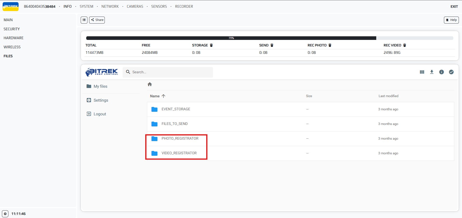 Note: Multimedia will be sent to the …_REGISTRATOR folder in the INFO/FILES section
