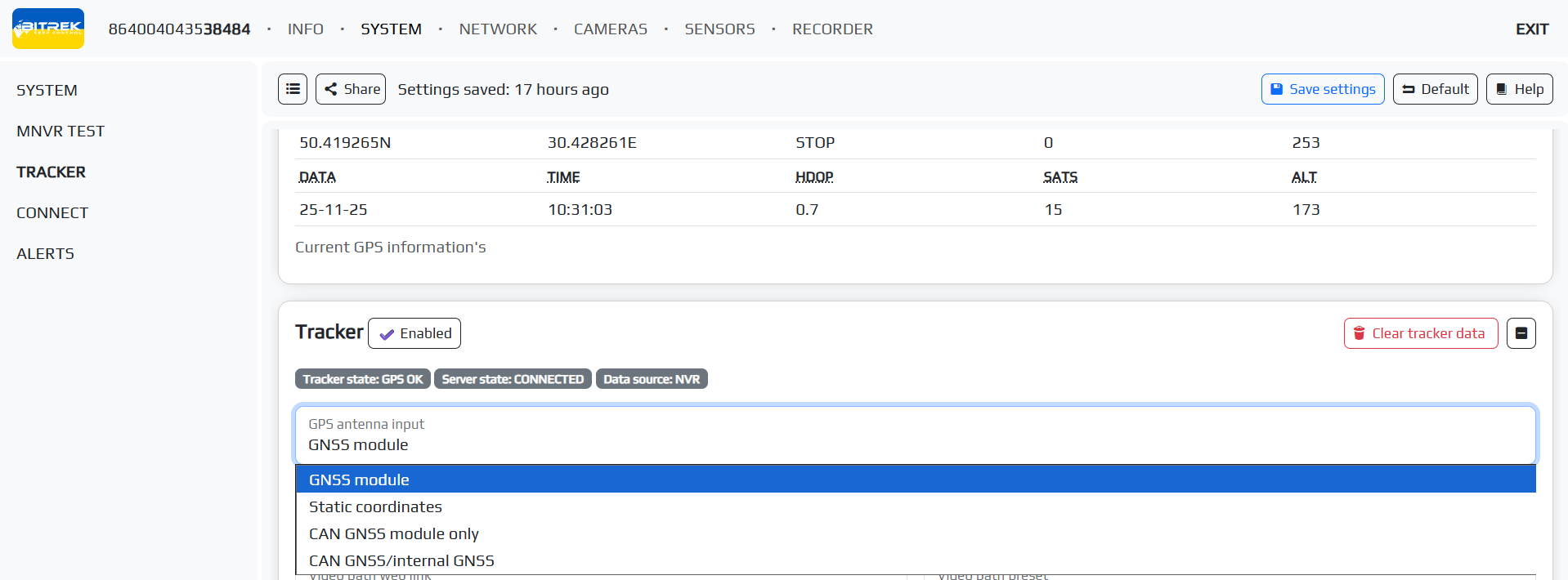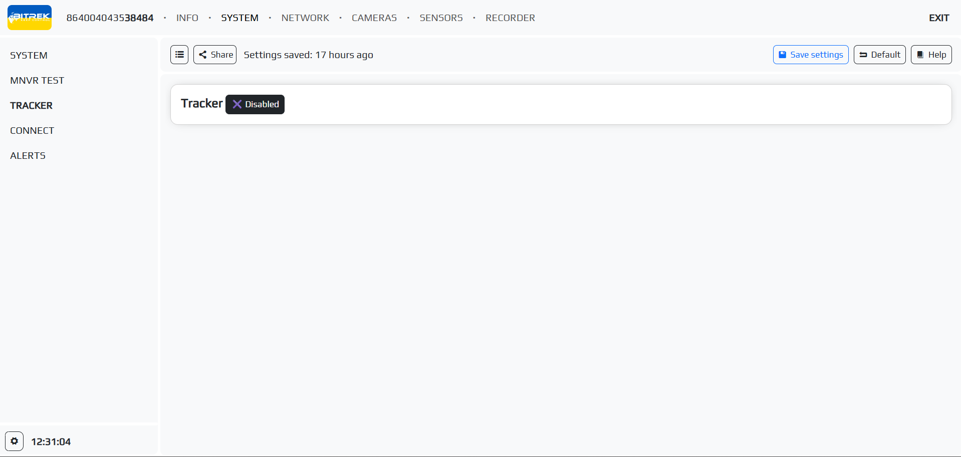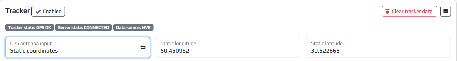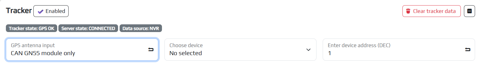 To configure the tracker, you need to go to the appropriate tab in the SYSTEM/Tracker section and turn on the tracker by clicking the corresponding button