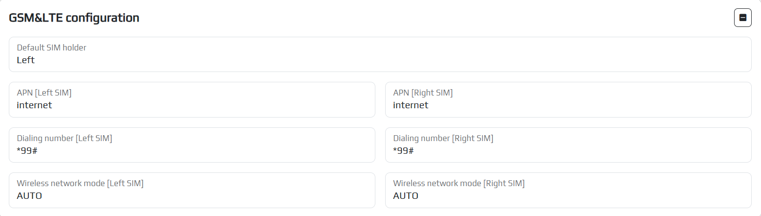 - GSM/LTE configuration;