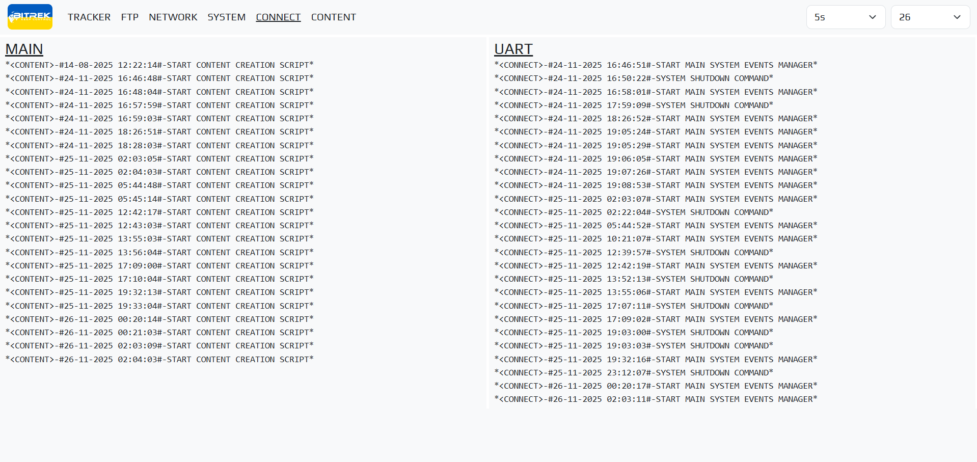 Section UART checks the health of devices and cameras connected via UART