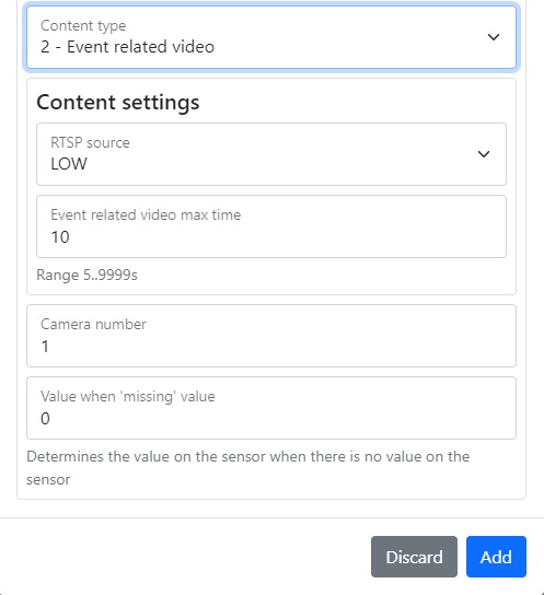 | Event related video | Allows you to select the RTSP source and the maximum video time associated with the event |