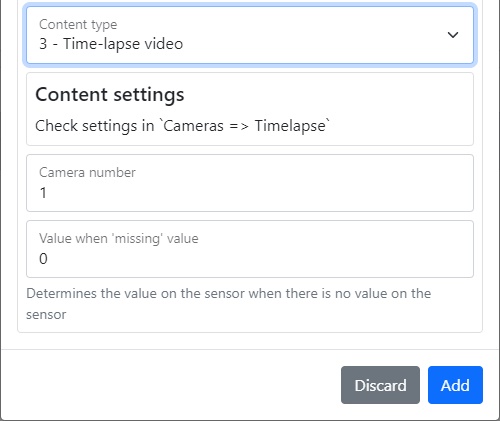 | Time-lapse video | Allows you to select RTSP links, the number of photos, the interval between them and the number of frames per second |