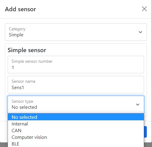| Sensor type | Sensor type, Internal, CAN, BLE or Computer vision |