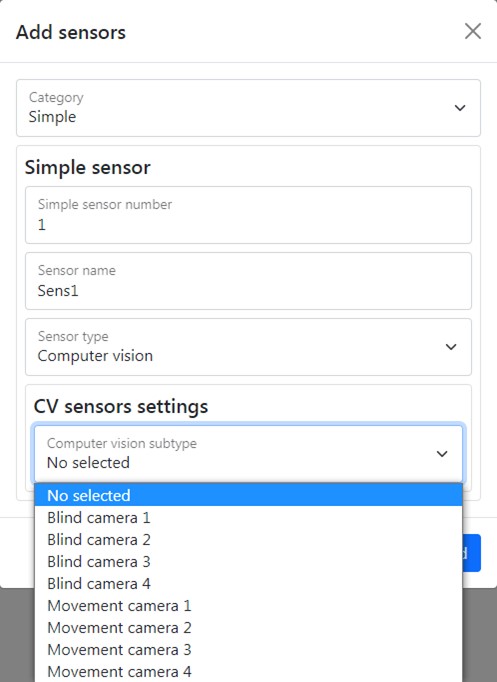 Figure 13 - menu of Computer vision sensor type