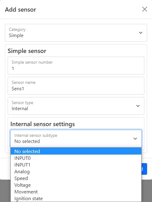 Рисунок 9 – add sensors menu
