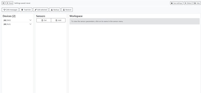This chapter allows you to see which devices are connected to mNVR, check out CAN messages, add sensors or delete them, if there are a necessity you can restore them from trash bin