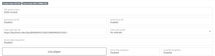 In this section of the configuration site, you can enable a software tracker that allows: - monitor the position of the mNVR and send data to the server via IPS; - send photos to the server via IPS; - send links to photos and videos linked to IPS coordinates.