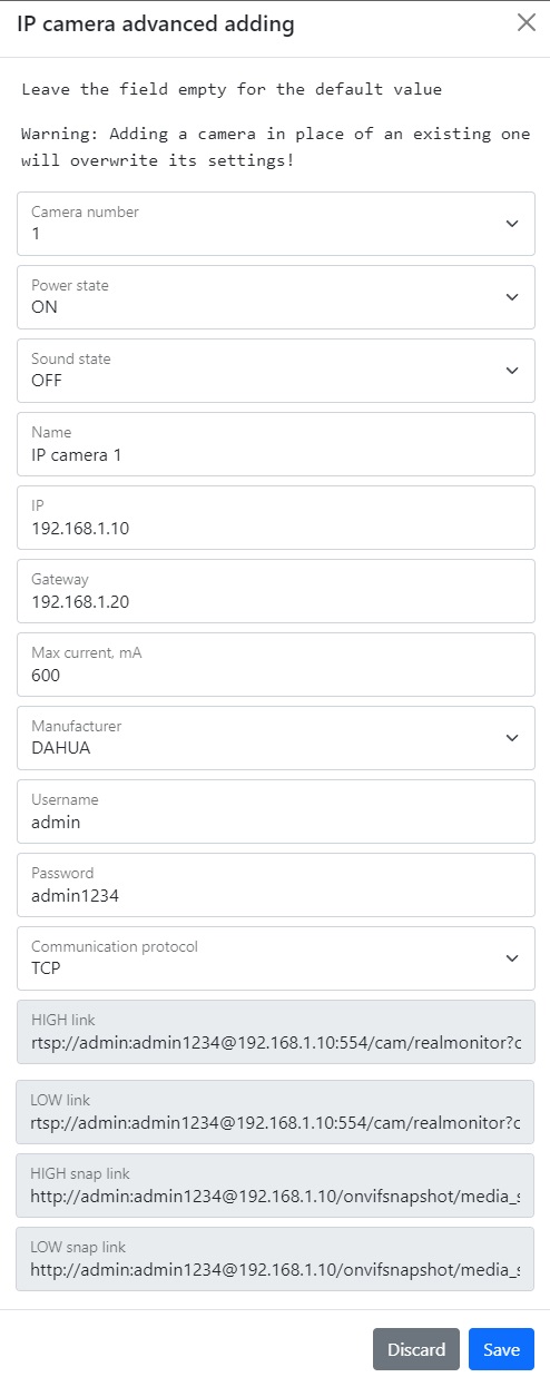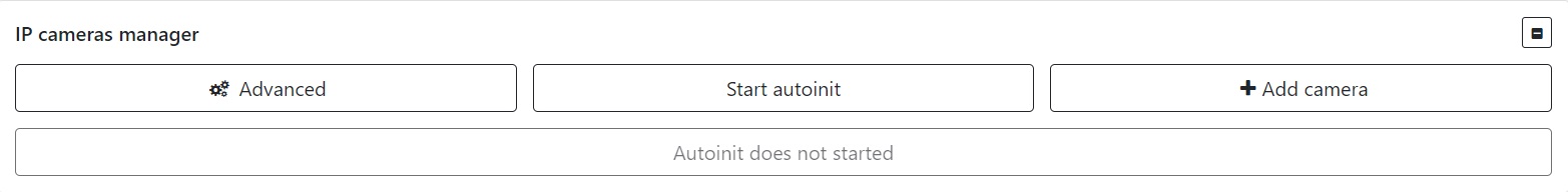 In most cases, autoinit will detect and add the camera for you, however, if this does not happen, you can try to add it manually by clicking the “Add” or “Advanced” button and specifying the desired parameters.