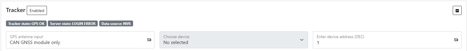 To configure the tracker, you need to go to the appropriate tab in the SYSTEM/Tracker section and turn on the tracker by clicking the corresponding button