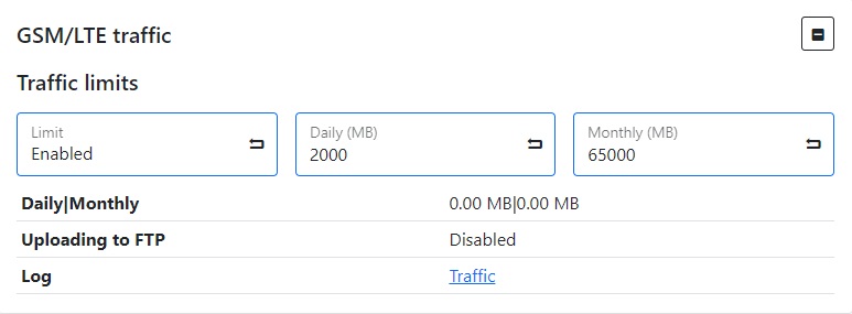You can configure the traffic limit on the device to save it, for this you need to go to the NETWORK/GSM tab, enable the limit using the corresponding button and set a limit for the use of traffic by the device per day or per month.