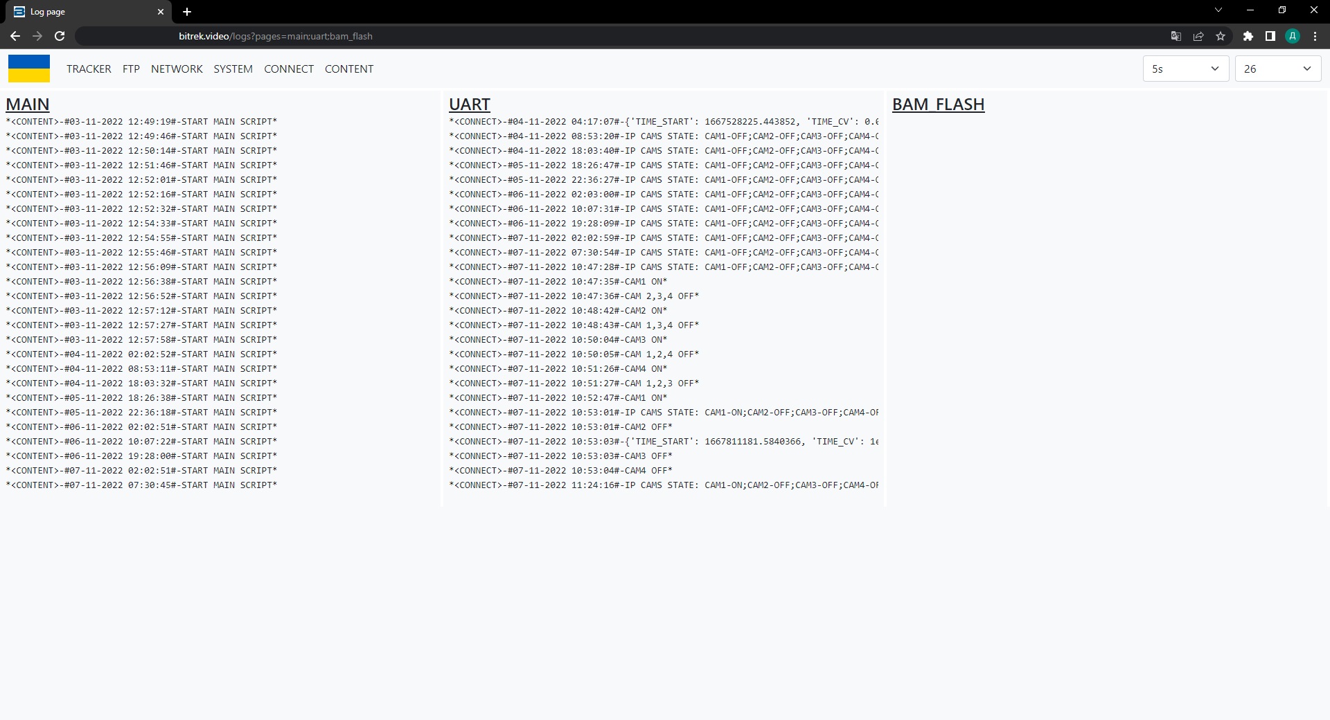 Section UART checks the health of devices and cameras connected via UART