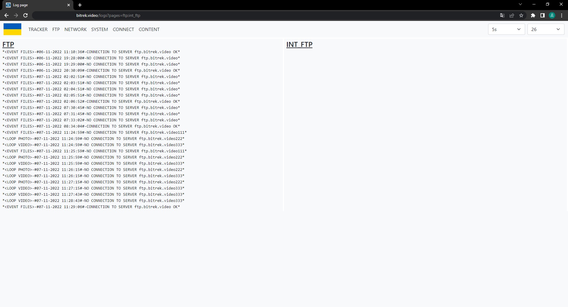 In the INT FTP section, information about the status of your internal storage (SD card, SSD drive, etc.)