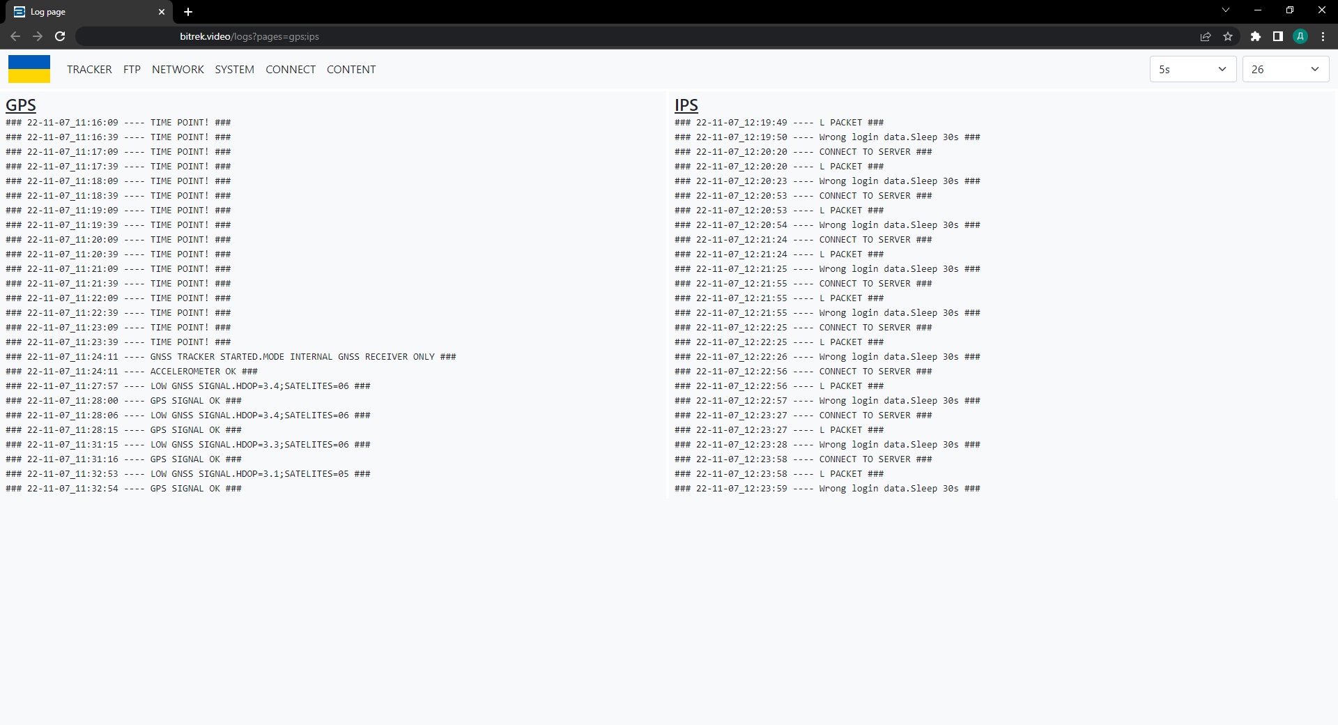 The GPS section contains information about your GPS tracker