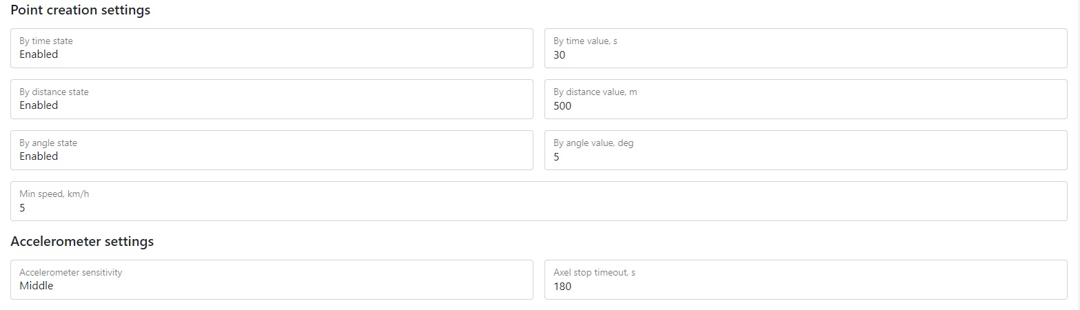 Stop timeout - the time at which the vehicle can stand and the track of points is not reset (for example, when the vehicle is at a traffic light)