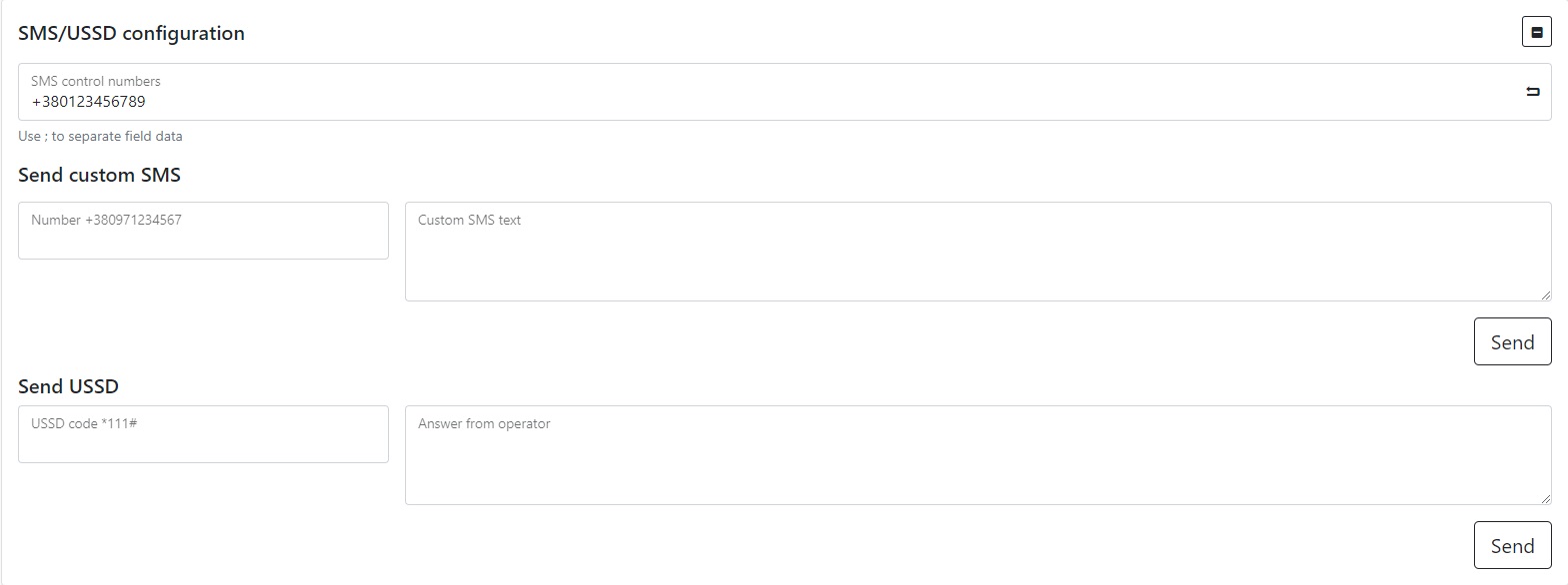 The device allows you to configure sending SMS by the user for example to receive the number from which the SMS is sent. And send USSD codes for example *111# to check the account on the SIM card.