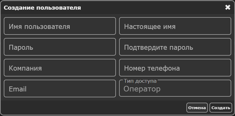 | Тип | Тип пользователя | admin - возможность создания пользователей инженер и оператор, возможность добавления устройств и пользователей. уровень по умолчанию при регистрации, максимальные возможности; engineer - возможность создания инженеров и операторов, возможность добавления устройств и пользователей. используется для удобства распределения прав например по департаментам; operator - возможность добавления устройства, нет возможности добавления пользователей. используется для добавления конечных потребителей информации - например операторов, СБ и т.д |