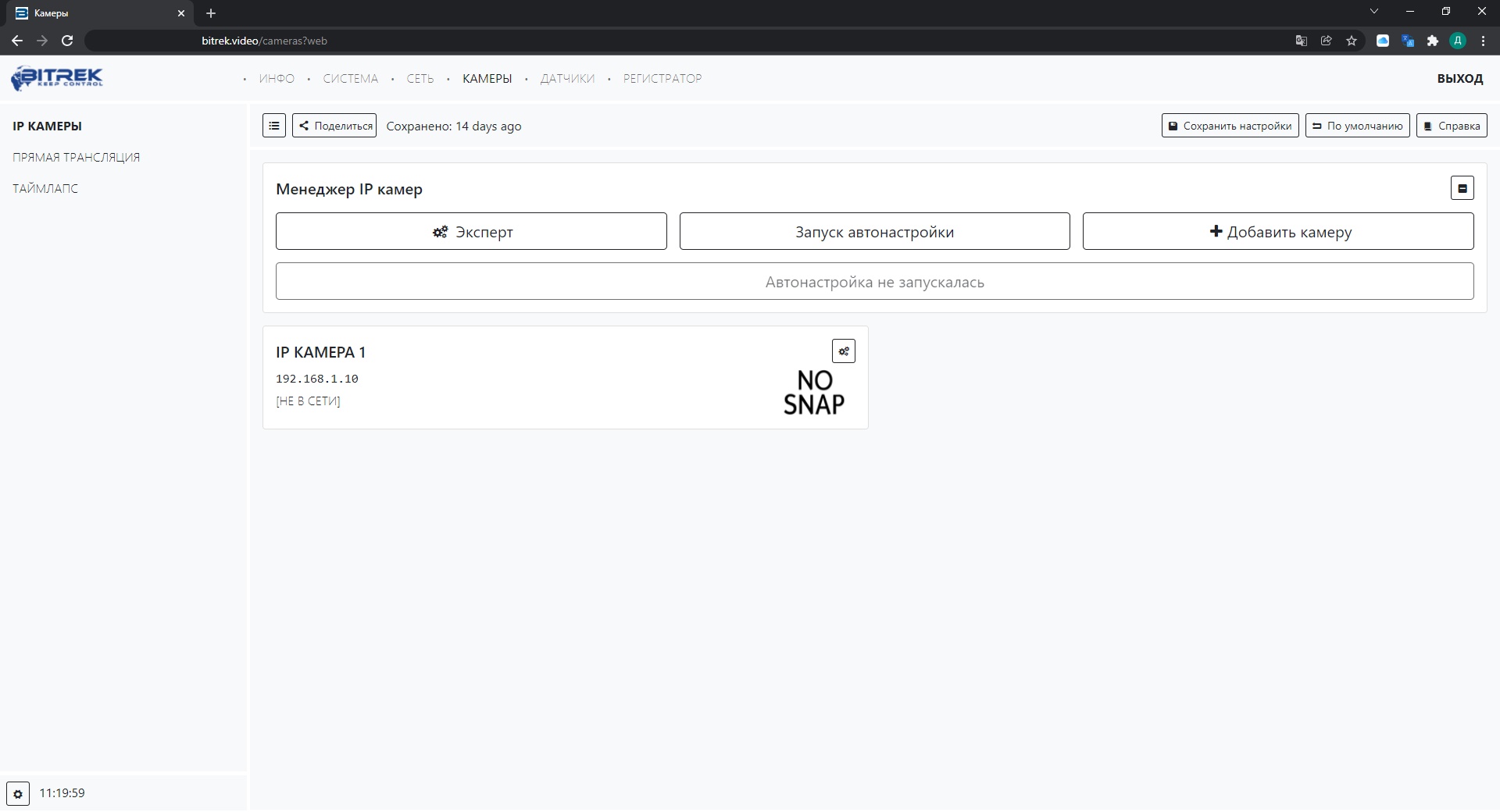 Вам нужно нажать кнопку Запуск автонастройки-произойдет попытка автоматической настройки камер. В случае ошибки настройки попробуйте нажать кнопку Расширенные и заполнить данные вручную