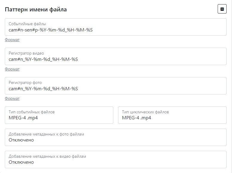 Для начала нужно использовать параметры mNVR для настройки названия создаваемого файла, после чего нужно использовать паттерн, примеры паттернов описаны в таблицах ниже:
