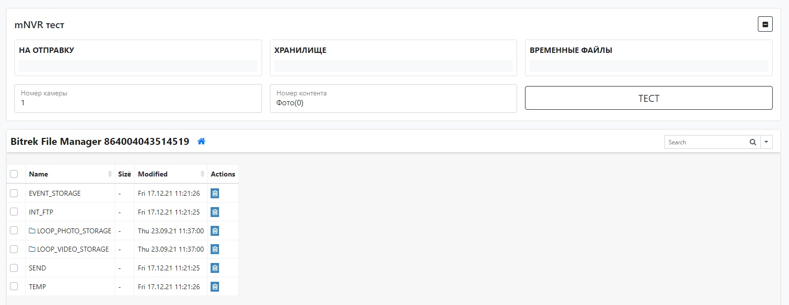 Вы попадете на страницу теста, где подключив камеру, можете протестировать ее работоспособность, выбрав номер порта к которому она подключена(номер камеры) и тип контента, который будет тестироваться, после выбора этих параметров нужно нажать кнопку тест, после чего просмотреть наличие тестового типа контента в файловом менеджере Bitrek