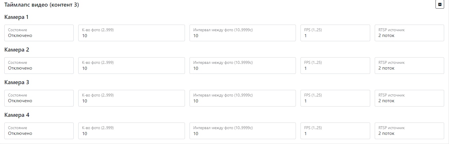 Time-lapse видео – раздел, позволяющий настроить состояние камер, количество фото и интервал между ними, их качество и количество кадров в секунду
