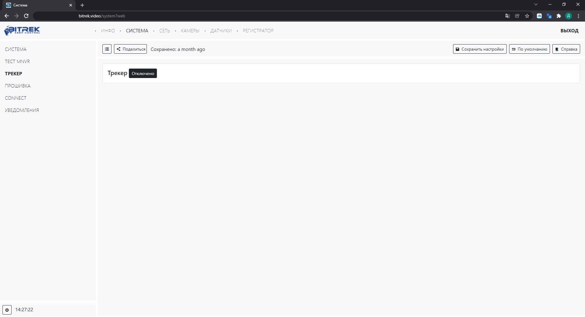 После этого нужно зайти в меню конфигурации прибора и перейти на вкладку Система/Трекер