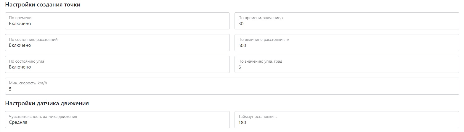 Рисунок 2 - Настройка создания точки и чувствительности сенсора движения