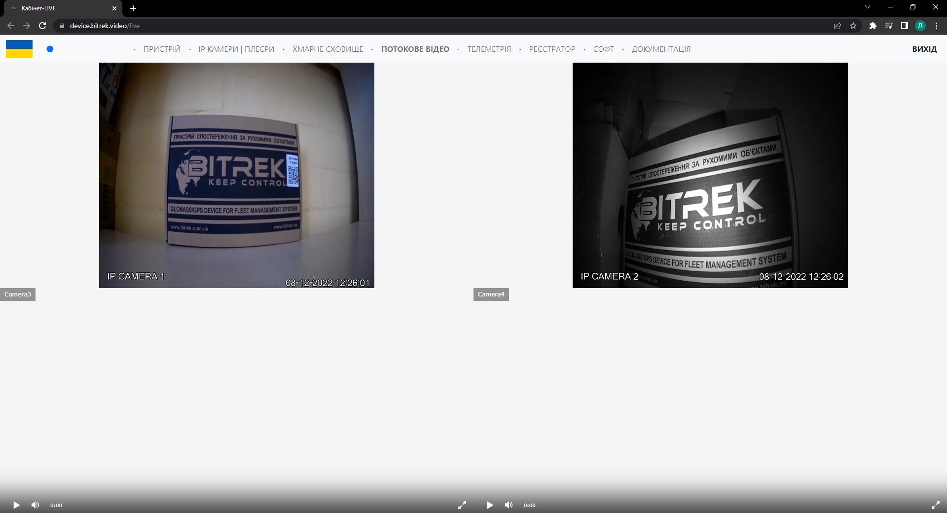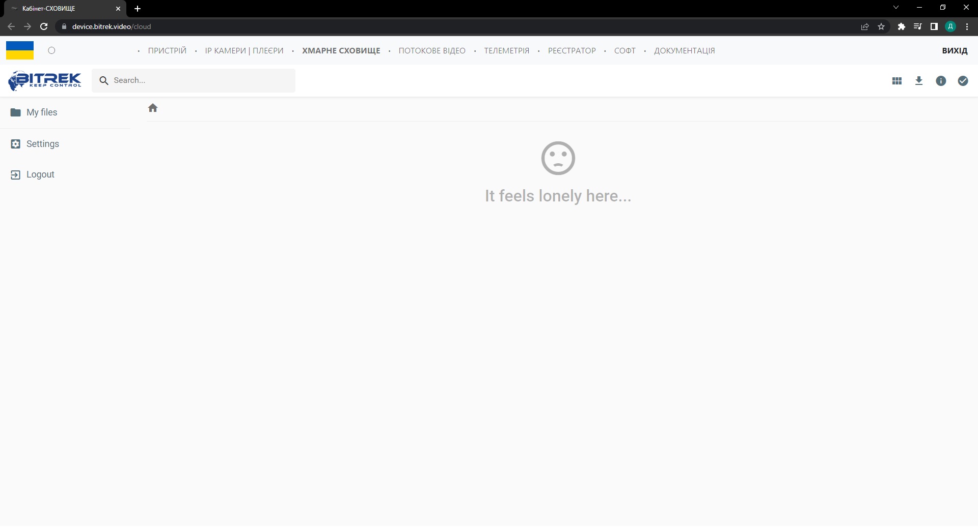Ввівши пароль на сайті Bitrek.Video із наклеки на пристрої ви потрапляєте в кабінет користувача.