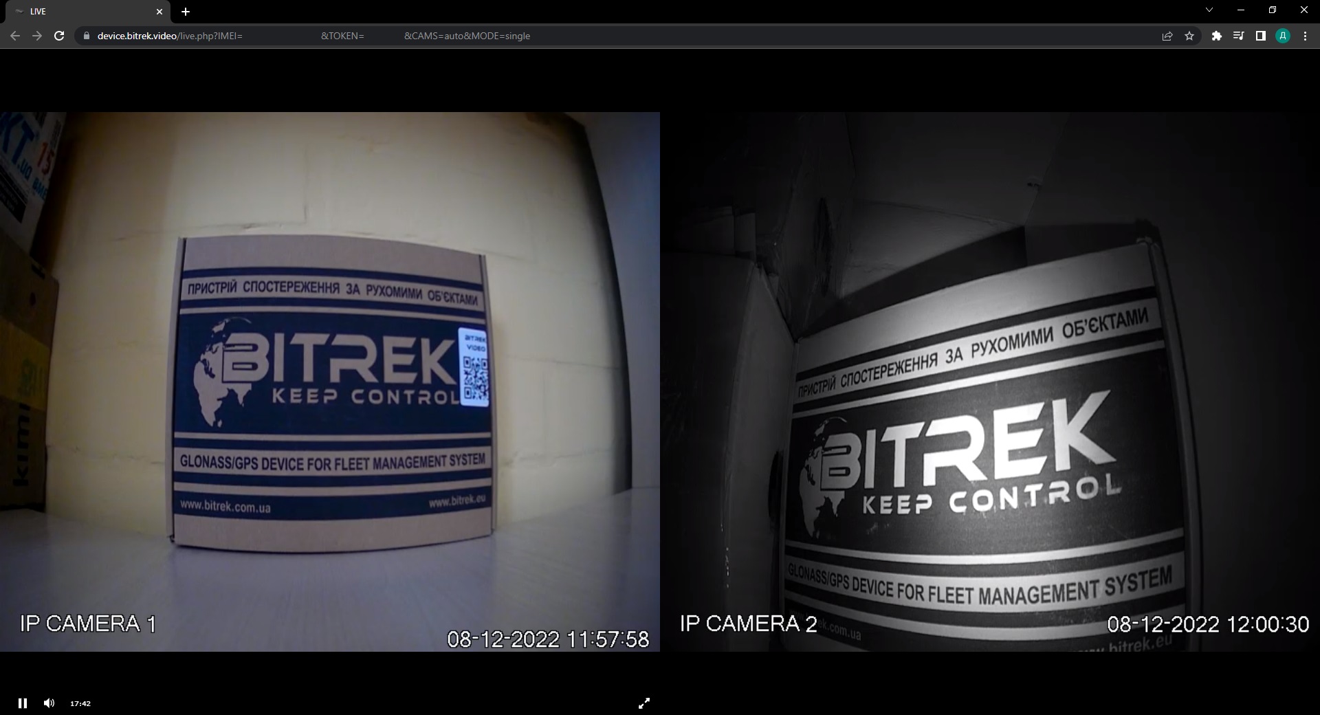- Однокористувацький однопотоковий програвач потокового відео - дозволяє переглядати зображення із однієї камери в режимі прямої трансляції, інші камери будуть призупинені для економії трафіку (на фото камера справа призупинена)