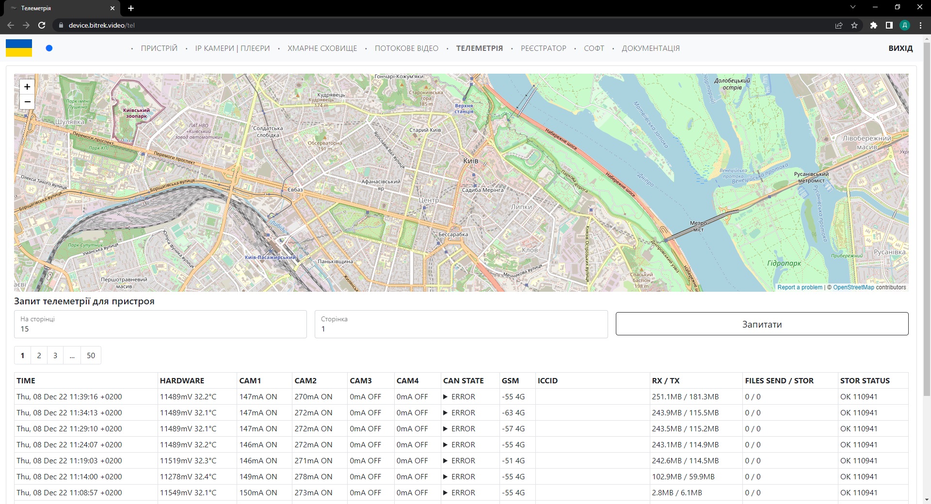 Вданому розділі ви маєте змогу запитати телеметрію для вашого пристрою яка дозволяє побачити такі параметри як: