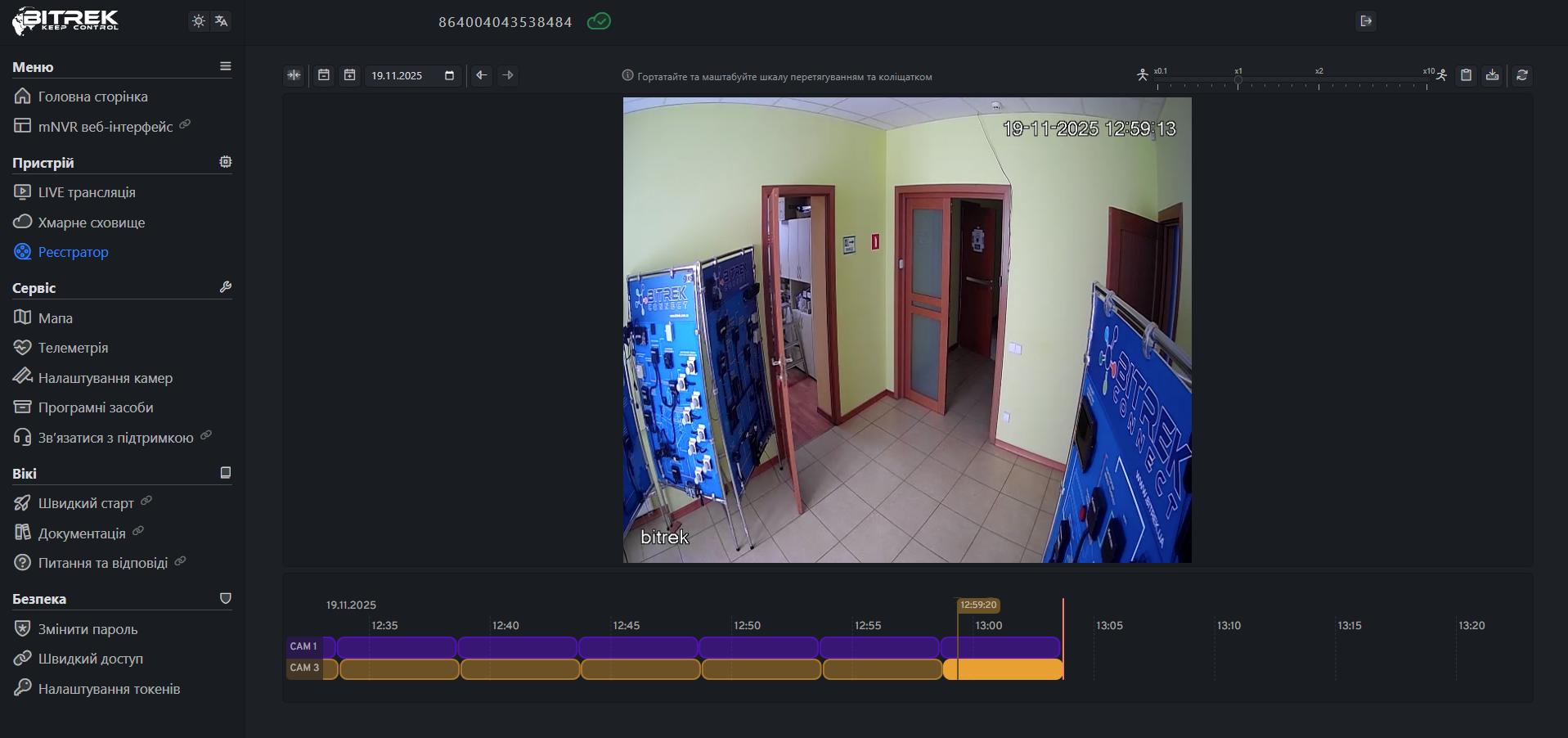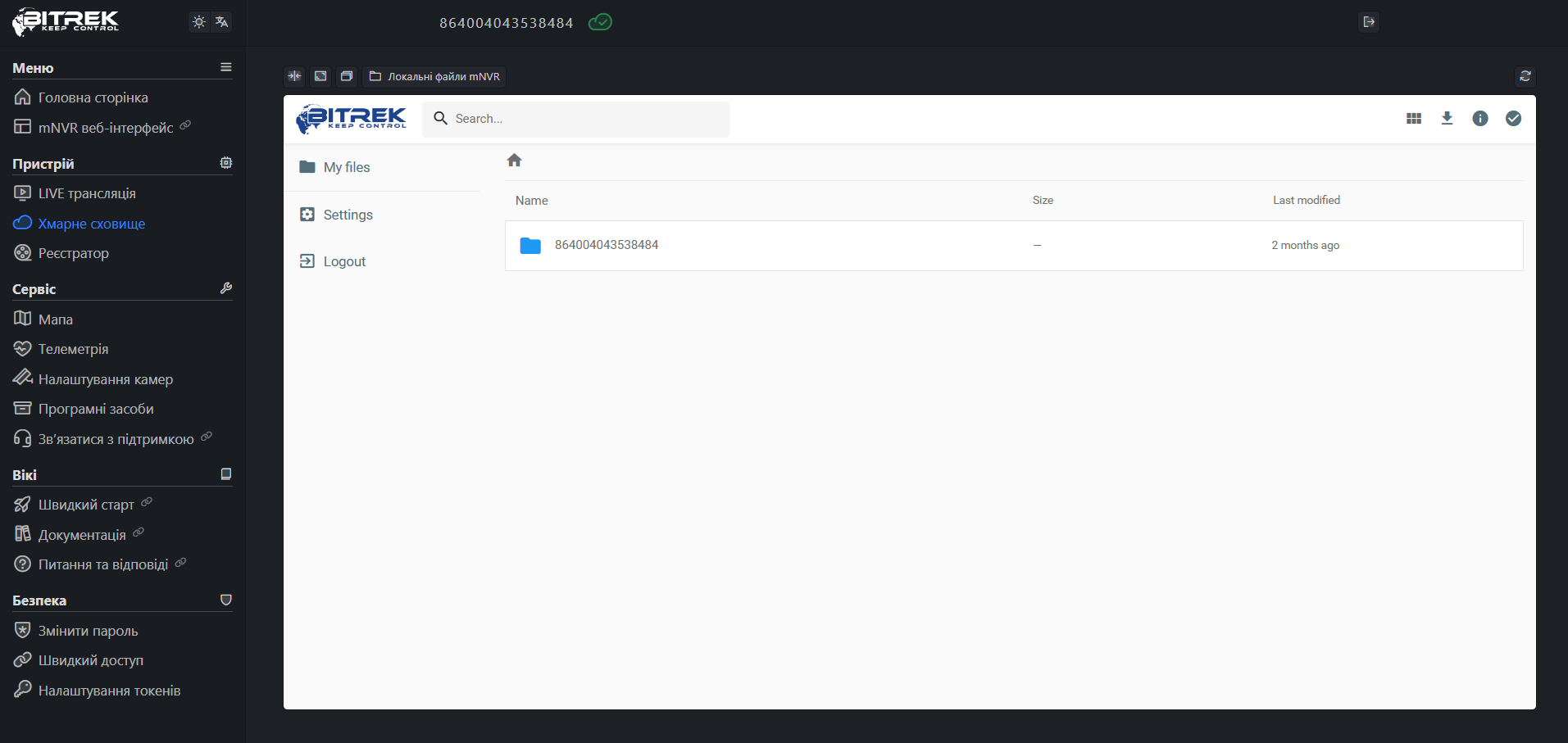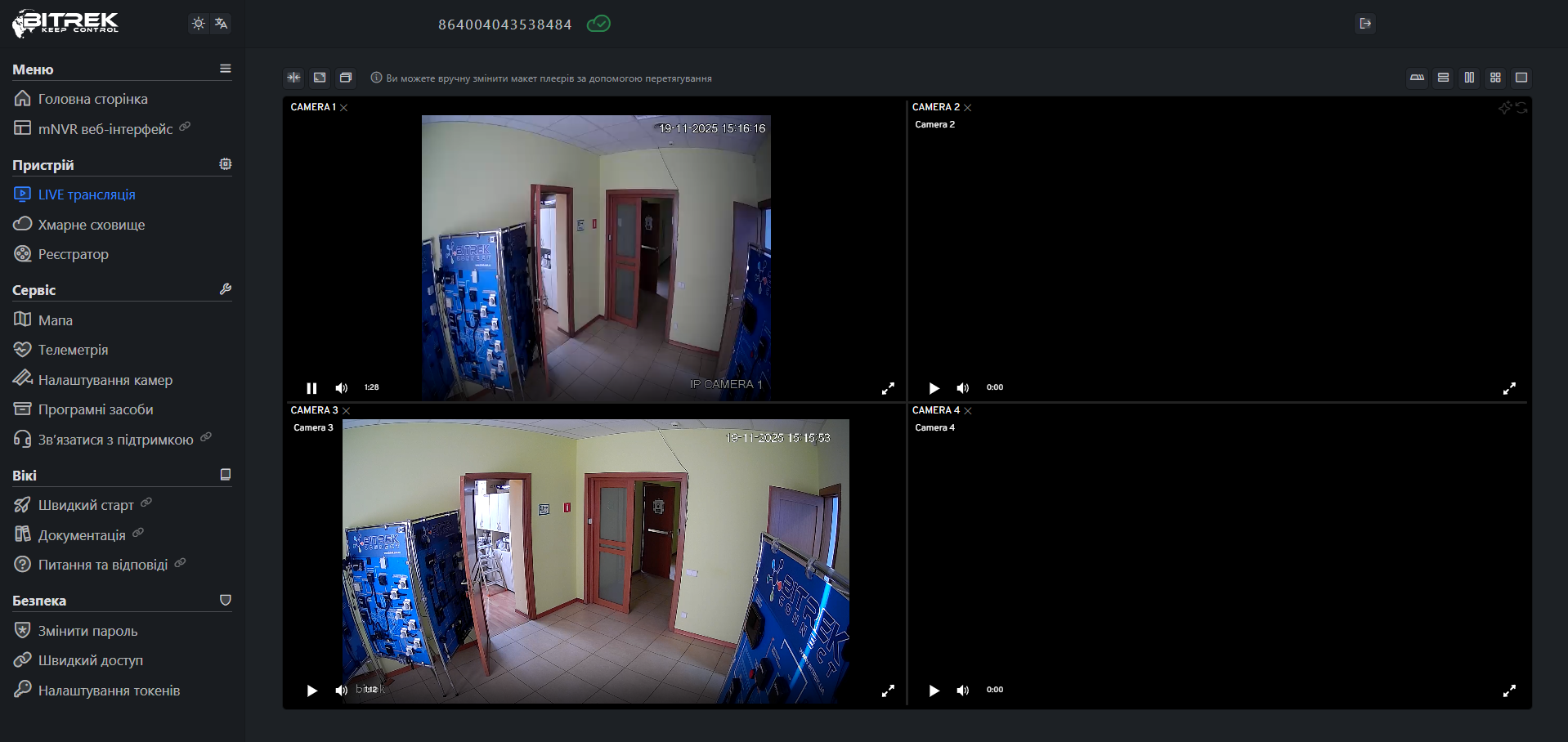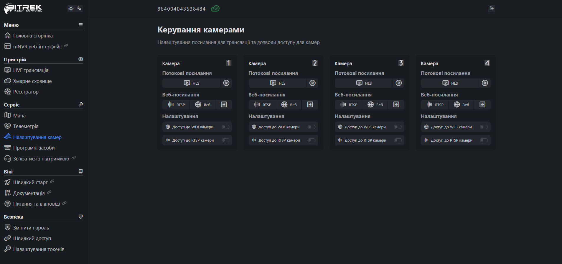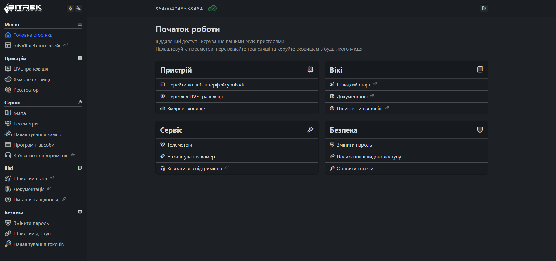 Ввівши пароль на сайті Bitrek.Video із наклеки на пристрої ви потрапляєте в кабінет користувача.