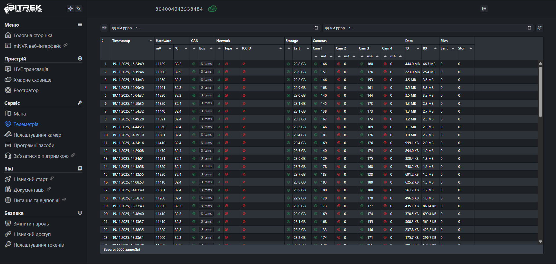 Вданому розділі ви маєте змогу запитати телеметрію для вашого пристрою яка дозволяє побачити такі параметри як: