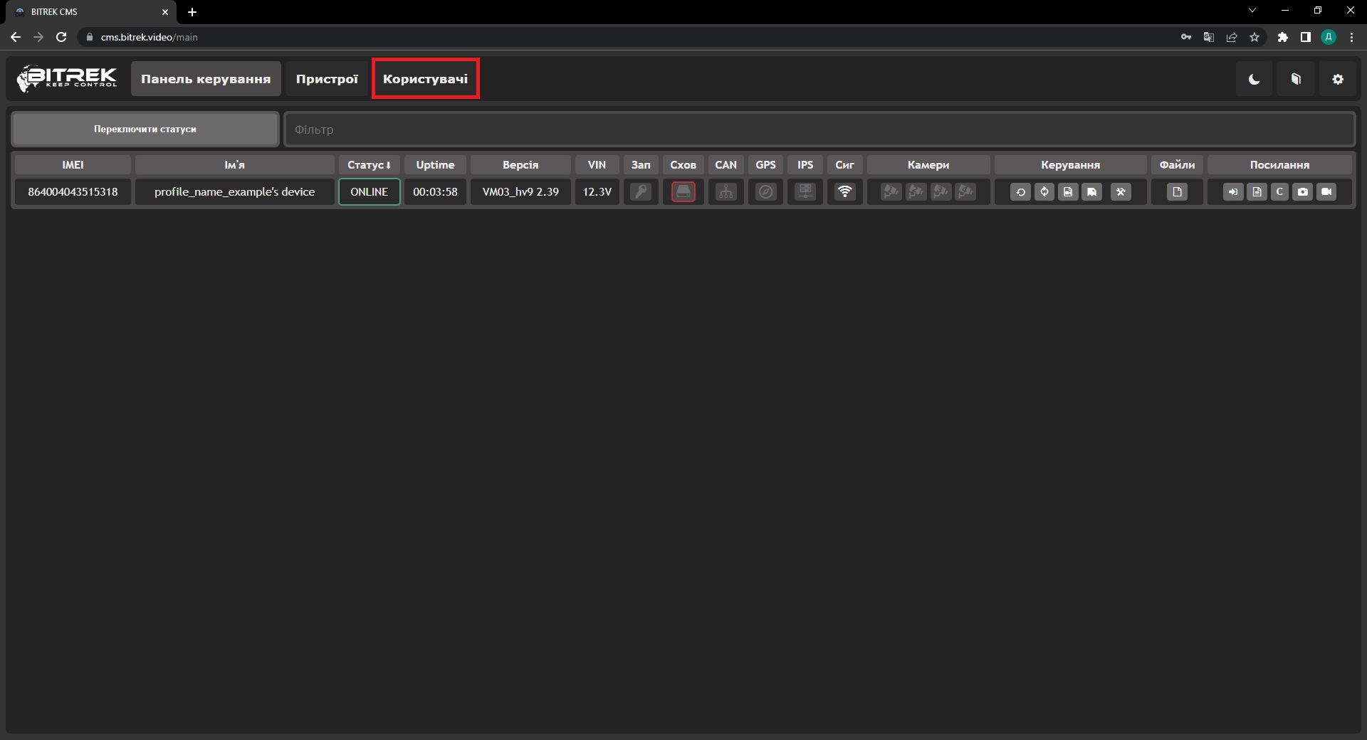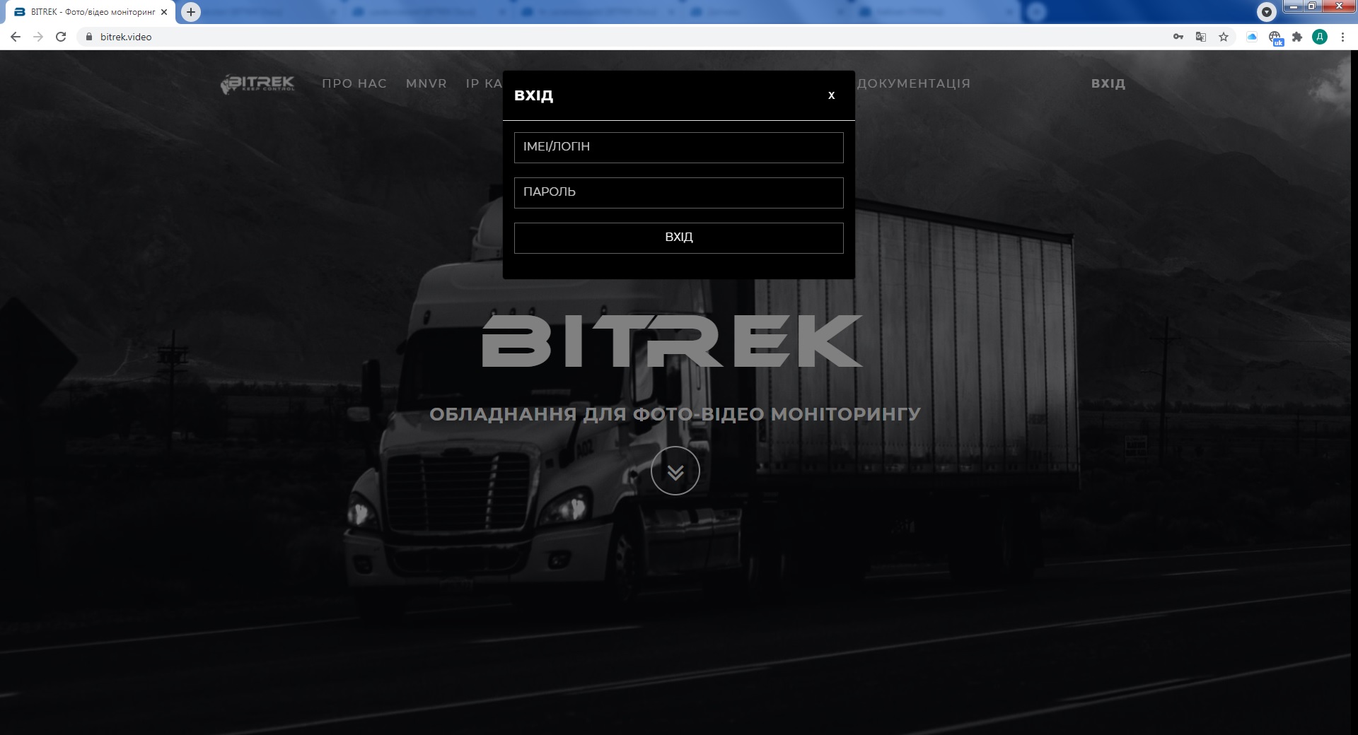 Якщо у вас є більше двох пристроїв і ви хочете з ними взаємодіяти або полегшити собі роботу ви можете зайти в систему керування приладами. Для цього потрібно зайти на сайт bitrek.video та натиснути кнопку ВХІД