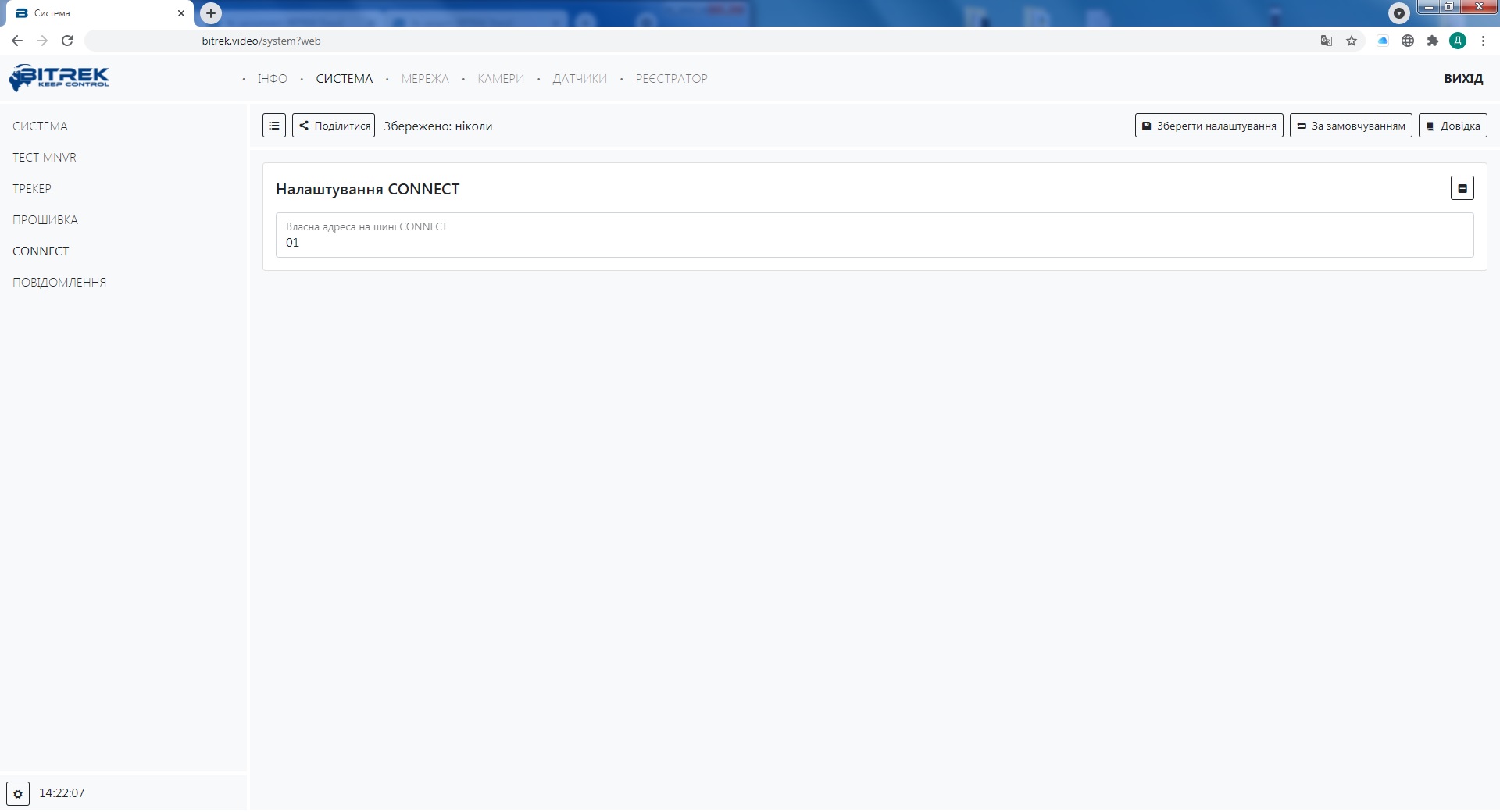В даному розділі, можна налаштувати підключення пристроїв по CONNECT шині, для цього потрібно вибрати адресу CONNECT шини пристрою