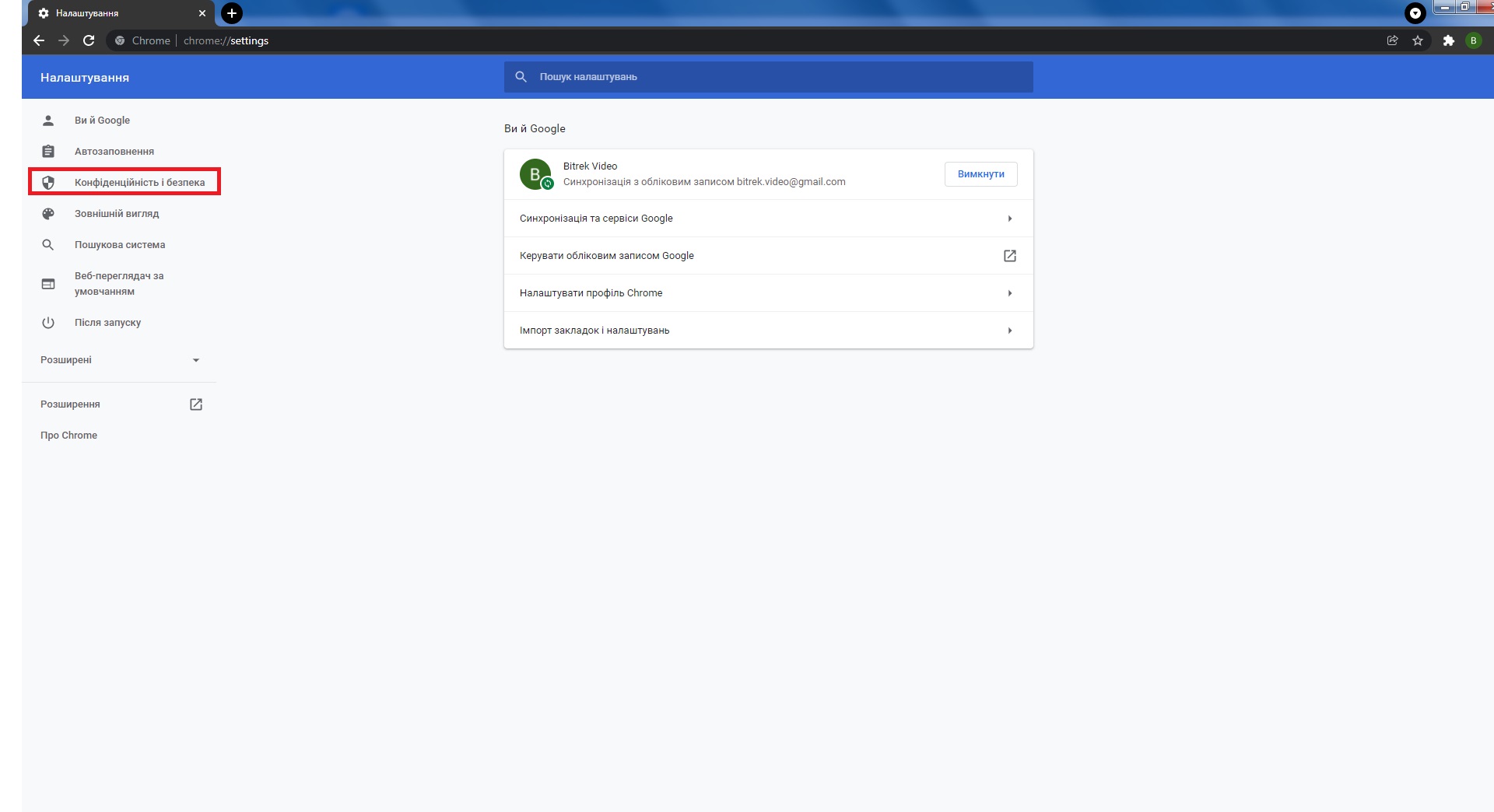 - Після цього потрібно зайти в розділ Конфіденційність і безпека