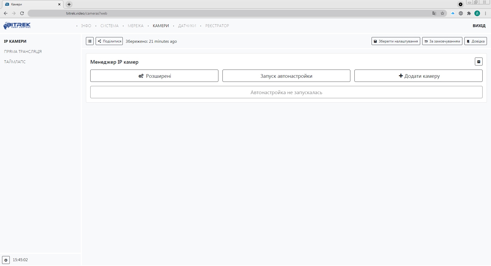 Після цього потрібно зайти в меню конфігурації приладу, та перейти на вкладку Камери/ІР Камери