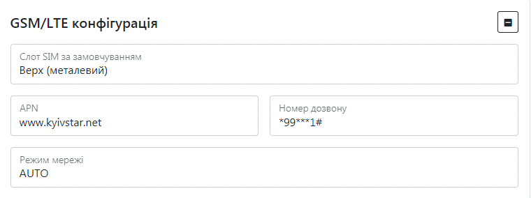 Рисунок 2 – Розділ GSM/LTE конфігурація