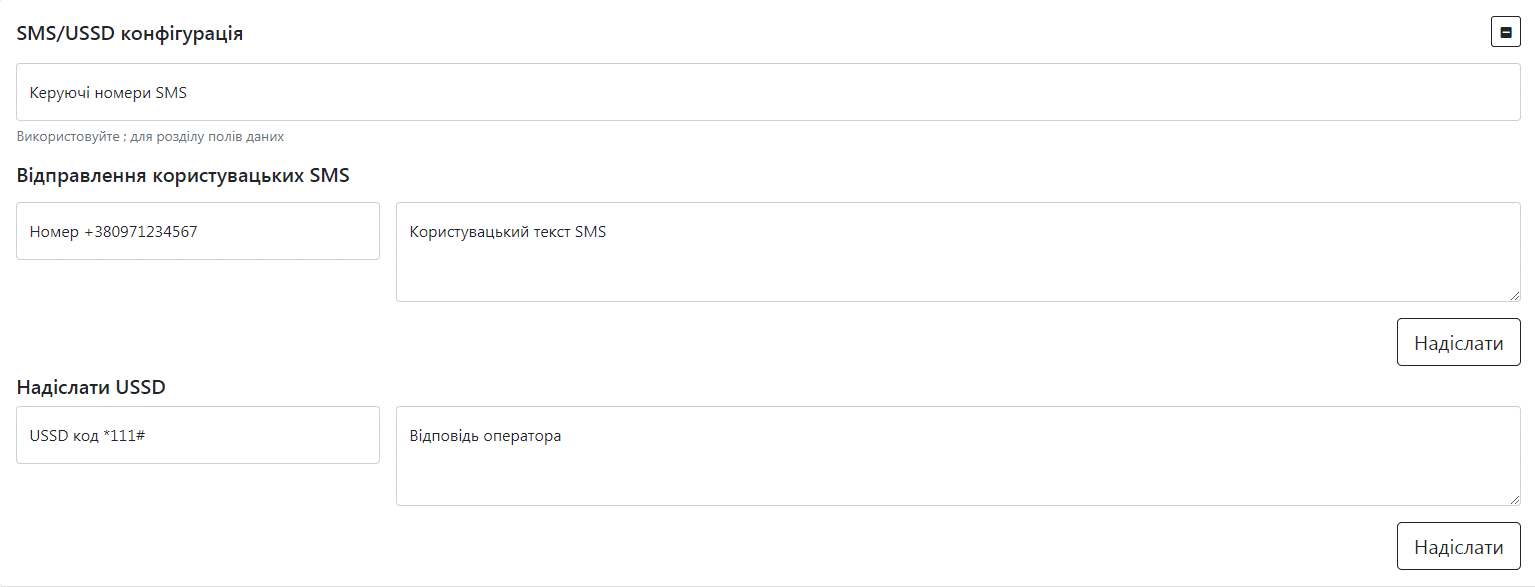 Рисунок 3 - розділ SMS/USSD конфігурація
