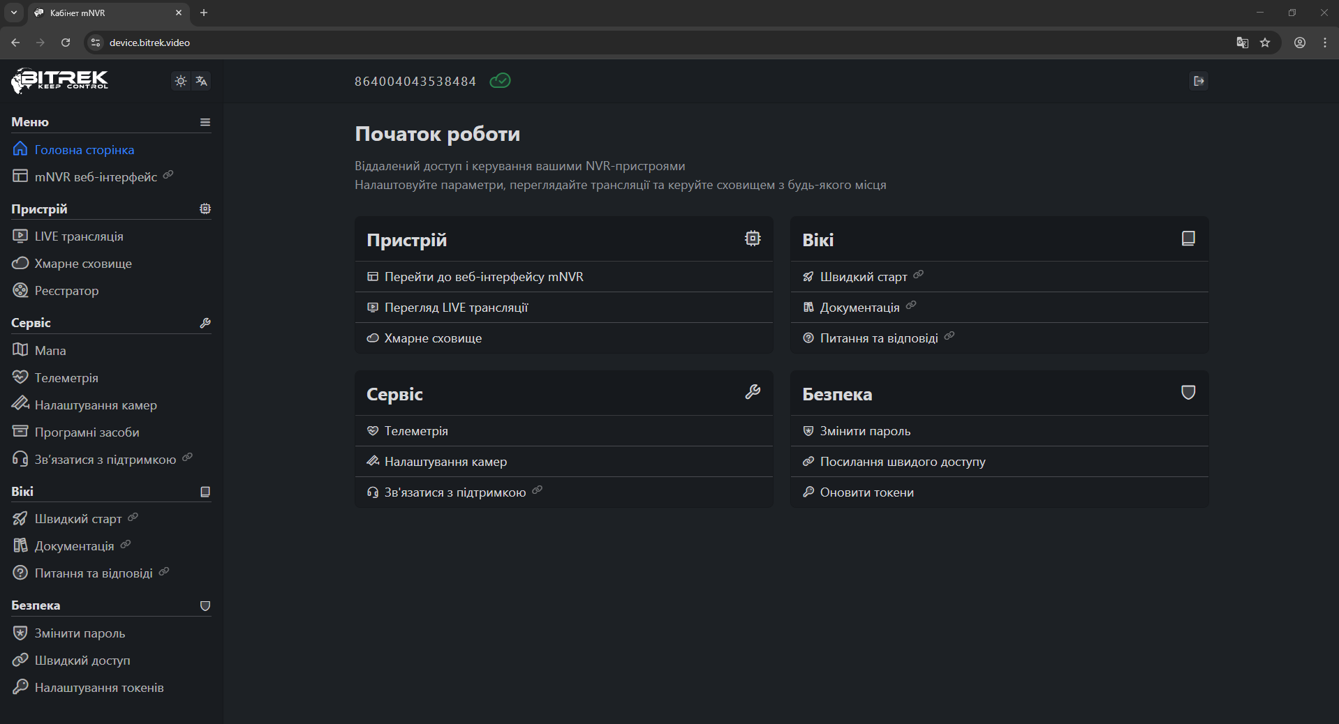 Швидкий старт по підключенню mNVR BITREK